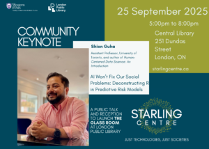 All are invited to attend this Community Keynote, “AI Won’t Fix Our Social Problems: Deconstructing Risk in Predictive Risk Models,” by Dr. Shion Guha (University of Toronto) on 25 September 2025 to launch the Glass Room at London Public Library. The Glass Room, an interactive exhibit, invites participants to learn what power they have to […]
