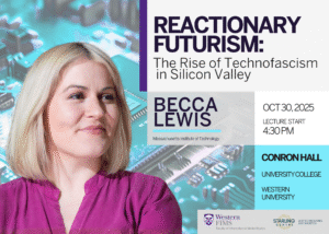 Join us in person on October 30 for this event cohosted by FIMS Rogers Chair 2025/26 lecture series where Assistant Professor Becca Lewis from the Massachusetts Institute of Technology will present her paper on “Reactionary Futurism”. Details at a Glance Time: 4:30 p.m. – 6:00 p.m. (reception to follow) Location: Conron Hall, University College *This […]