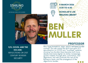 Everyone is welcome to attend this next installment of the Starling Speaker Series with Dr. Ben Muller, who will be presenting his paper, “9/11, COVID, and the ICE-age: Reflections on 21st Century Border Security.” Details at a Glance Where: Scholar’s Lab, Weldon Library, Western UniversityWhen: 11 March 2026, 4:30 to 6:30pm Abstract: How has the […]